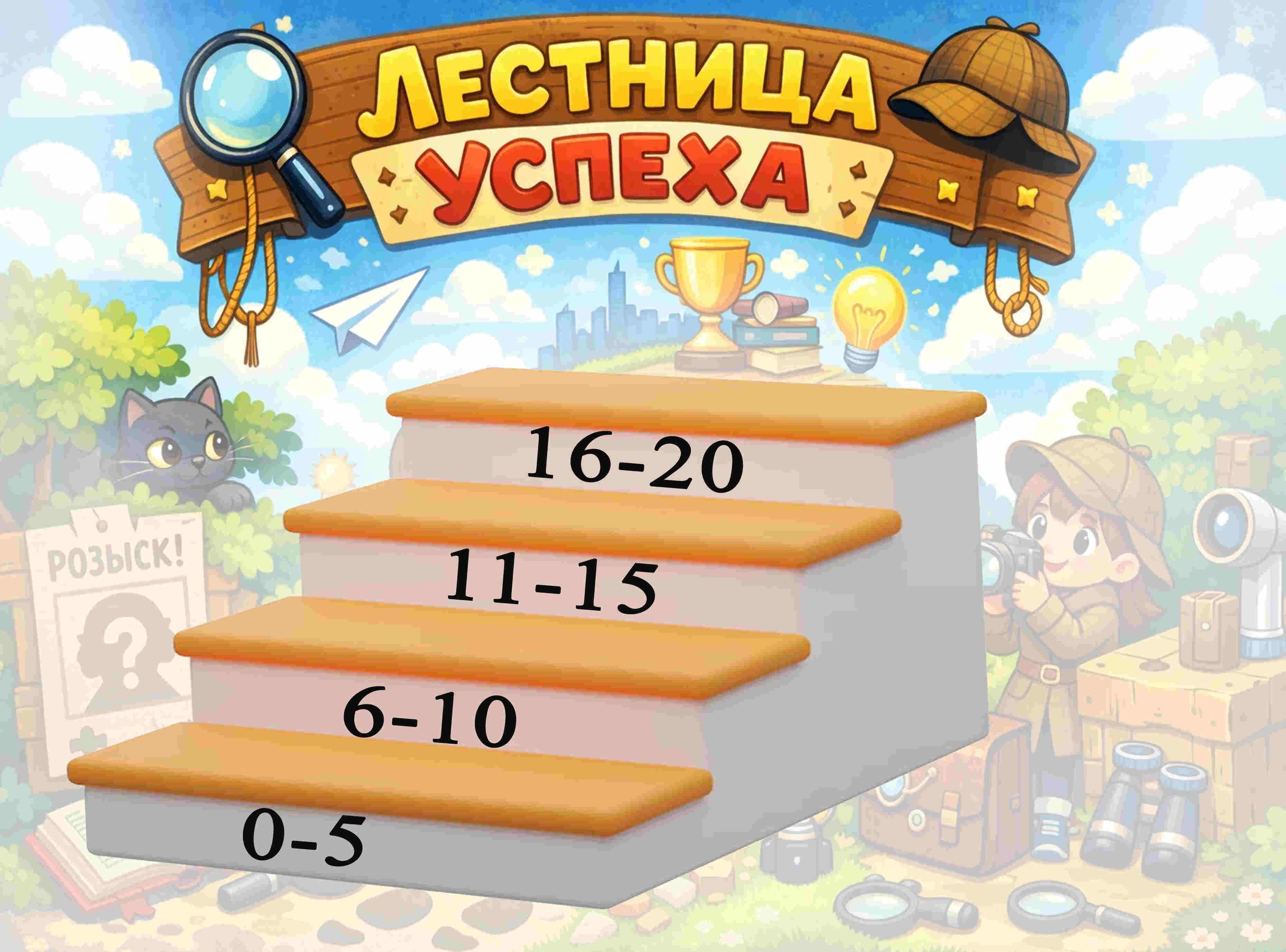 Когда будете выходить из кабинета, прикрепите на нужную ступеньку нашей лестницы успеха (Приложение 8).