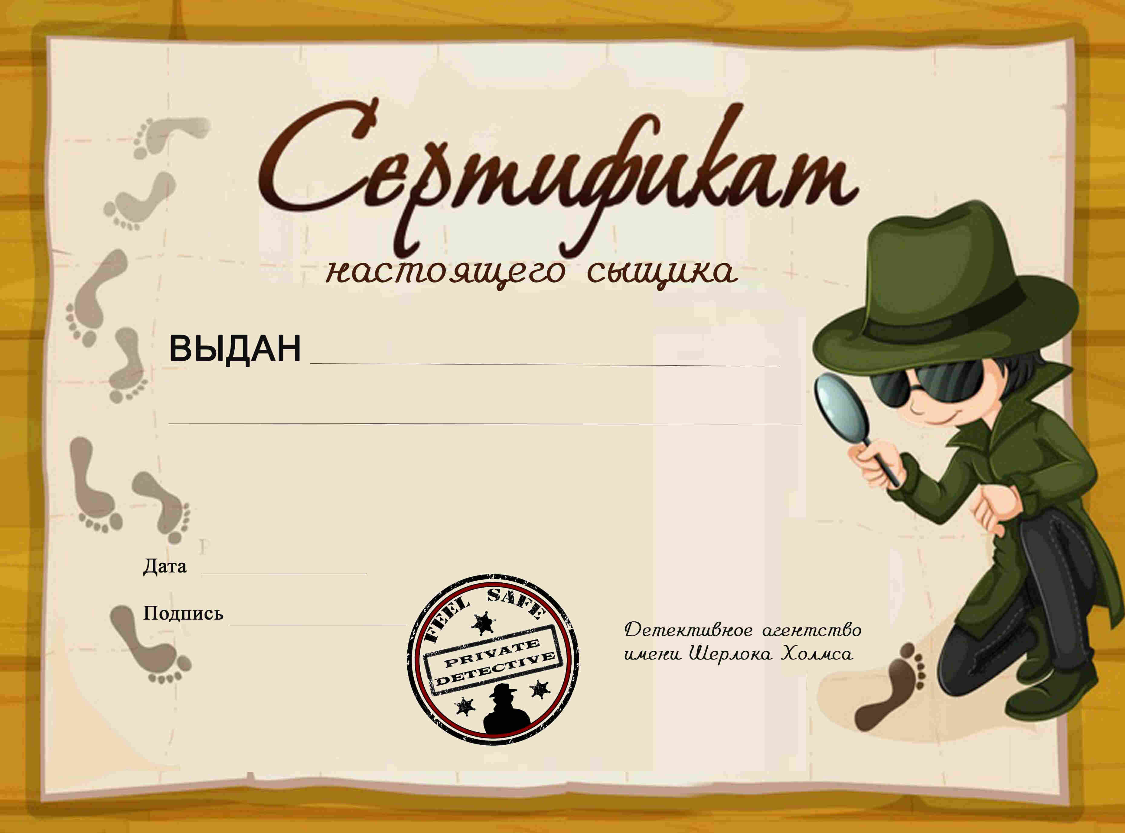 Ну, и за старания на уроке вы все награждаетесь сертификатами настоящего сыщика. (Приложение 9)