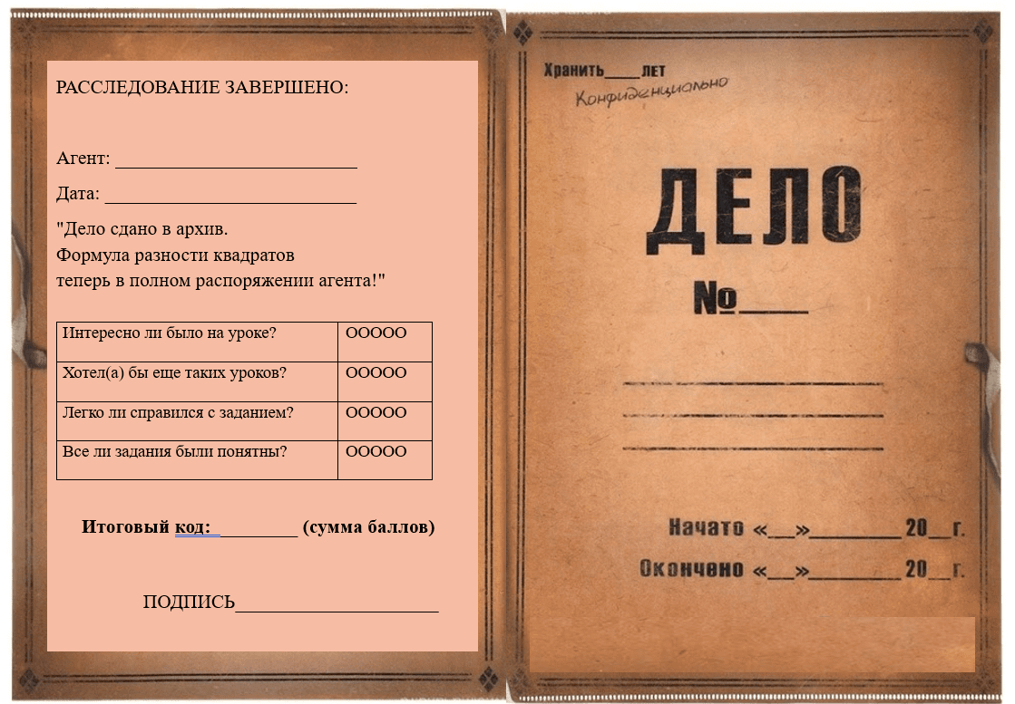 Закрываем наши личные дела. Наше расследование завершено. Вносим необходимые данные и заполняем таблицу баллами от 1 до 5. Считаем общее количество баллов.