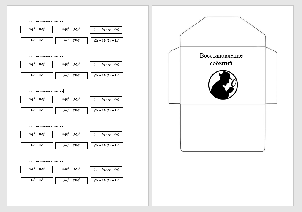 У каждого на партах лежит личное дело, где собраны материалы дел, которые мы будем расследовать.(Приложение 2)