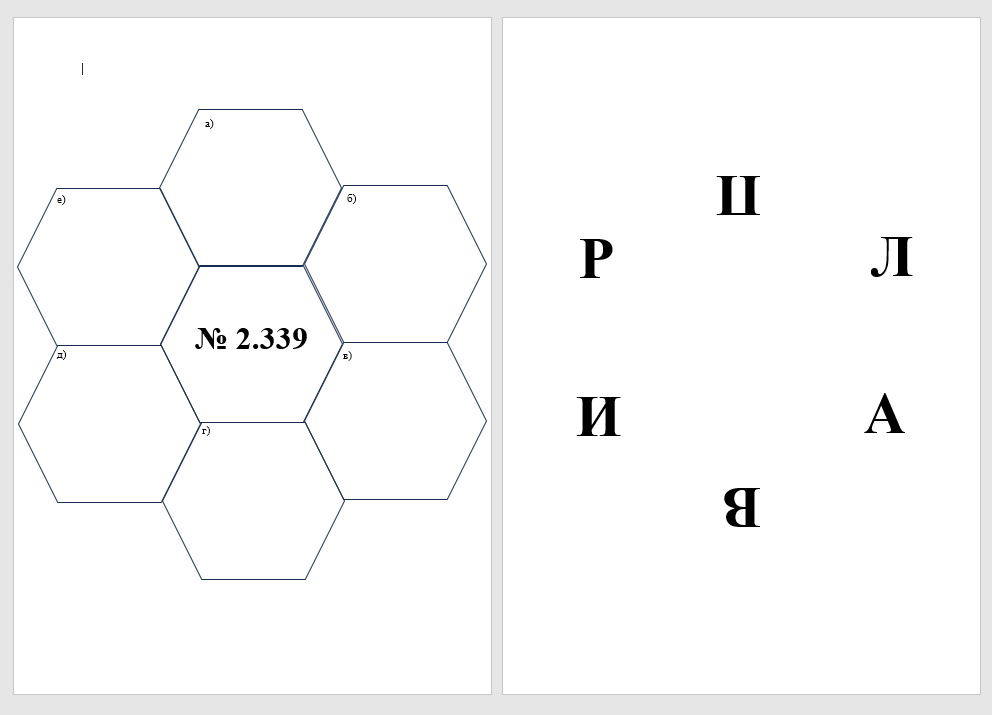 Задача: В случае правильного ответа загибаем лепесток гексагона. Из букв собираем слово.